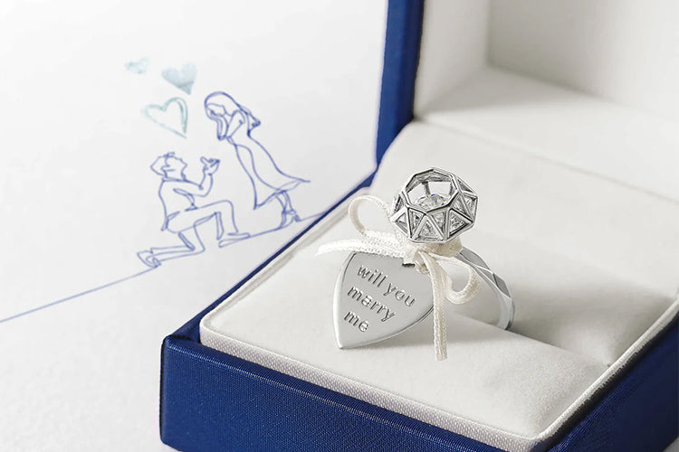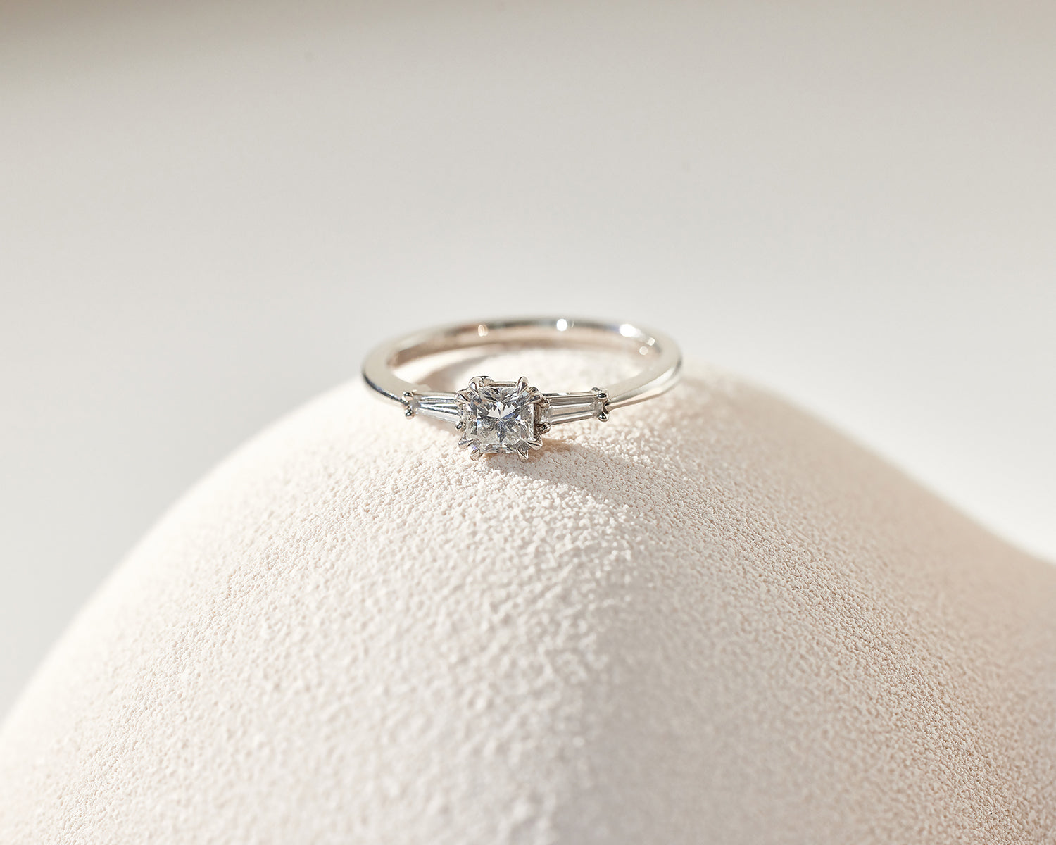 おふたりにとってかけがえのない瞬間となるプロポーズ。ロマンティックなシーンに憧れを抱く方は、女性のみならず、贈る側の男性にも多くいらっしゃる一方で「薬指のサイズが分からない」「相手の好みと違っていたら‥」というお悩みも多いもの。ヴァンドーム青山では婚約指輪とは別に「ヴァンドーム青山 プロポーズリング」という専用アイテムをご用意しています。ダイヤモンドを模したシンボリックなリングでプロポーズの想いを伝えた後、改めておふたりで婚約指輪を選びに行くことができるため、サプライズプロポーズをサポートするアイテムとしておすすめです。