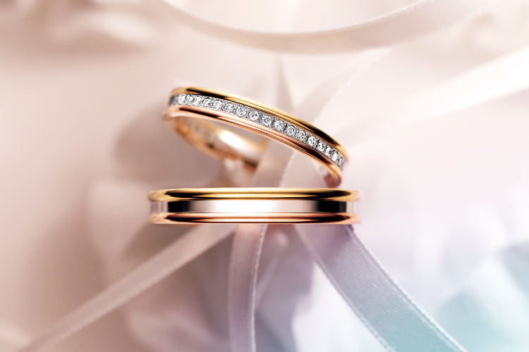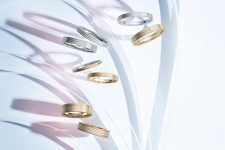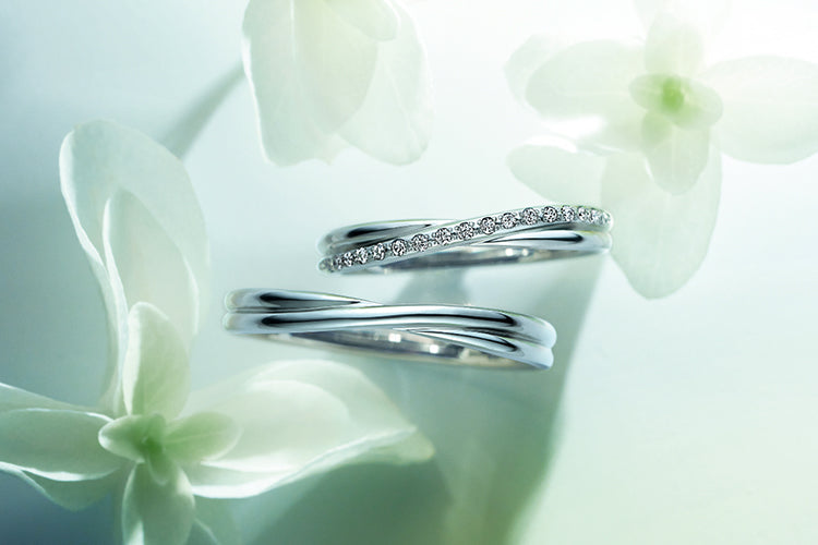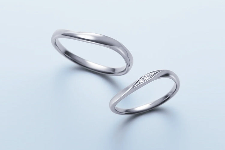 永遠に続く河の流れのように、たゆまなく流れる二人の人生をイメージ。緩やかなカーブは左手の薬指に自然にフィットし、性別問わず似合うようデザインされています。