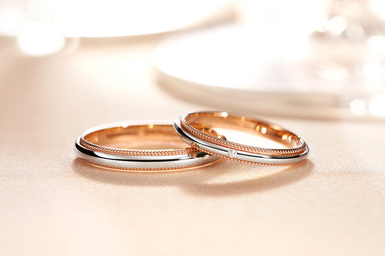 ミル(細かな玉を連続して彫り入れる装飾手法)をあしらったマリッジリング。フランス語で『1000の粒』を意味し、永遠の幸せや繁栄をもたらすと言われています。