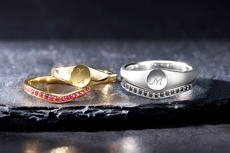 由緒正しい歴史を持つ「シグネットリング」と相手の愛や指輪を守る意味を持つ「キーパーリング」をベースに、地金素材や仕上げ・イニシャル・アニバーサリーストーン(誕生石)などを組み合わせ、自分らしいジュエリーがカスタマイズ出来る新しいスタイルのブライダルリング。