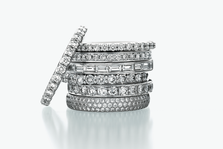 敷き詰められたダイヤモンドの連なりが「永遠」を意味するエタニティリング。永遠に続く愛と希望の光をイメージし、夢と憧れを表現した人気シリーズ。