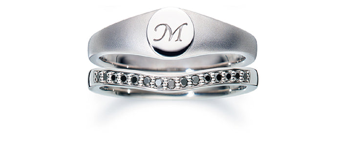 地金素材や仕上げ・イニシャル・アニバーサリーストーン(誕生石)などを組み合わせ、